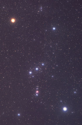 Orion Star Constellation, Milky Way Galaxy (clustered left)